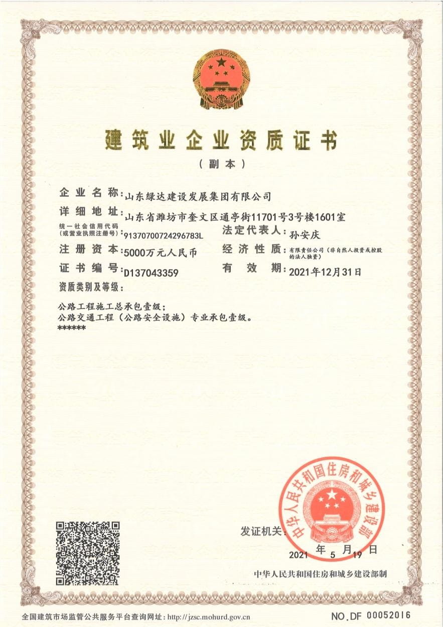 建筑業企業資質證書